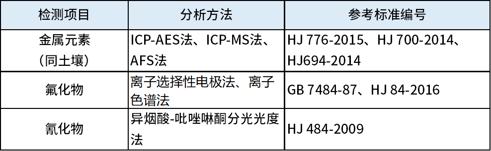 《詳查計劃檢測項目采用的分析方法一覽表》