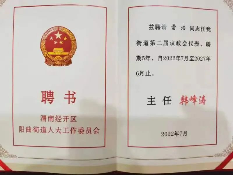 陜西秦云農(nóng)檢董事長(zhǎng)雷浩當(dāng)選渭南經(jīng)開(kāi)區(qū)陽(yáng)曲街道議政會(huì)代表