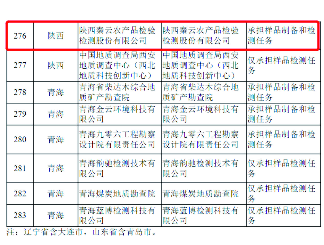 陜西秦云農產品檢驗檢測股份有限公司入圍第三次全國土壤普查檢測實驗室名錄