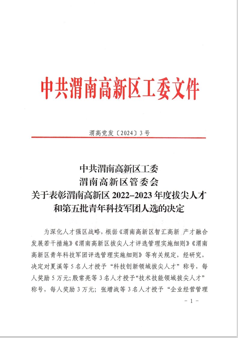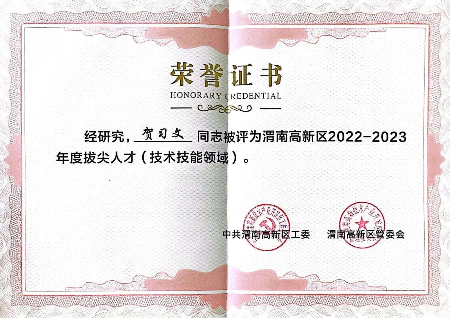 “渭南高新區2022—2023年度拔尖人才(技術技能領域)”